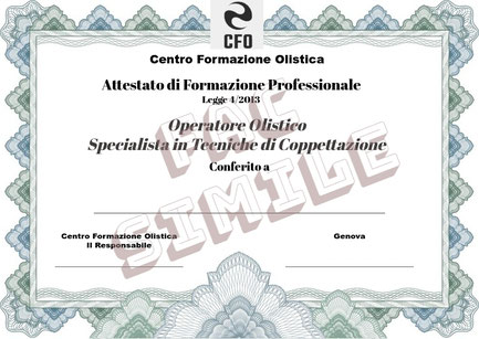 Al termine del Corso, verrà rilasciato un attestato di partecipazione e di qualifica professionale utile al riconoscimento della propria formazione in conformità a quanto previsto dalla attuale normativa in vigore (legge 4/2013)